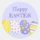 Happy Easter Eggs Purple Background Classic Round Sticker