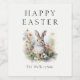 Happy Easter Modern Elegant Watercolor Bunny Custom Family Name Wine Label
