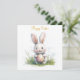 Cute watercolor illustration of a bunny holding a decorative Easter egg in a grassy field, ideal for spring and Easter themes. Perfect for sending warm wishes to family, friends, and loved ones. Spread the joy of Easter with a card that reflects your individual style and warmth. Make this Easter extra special!