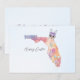 Send warm Easter greetings from the Sunshine State with this unique Florida-themed card. The design features a Florida State map in pretty pastel colours with beautiful pastel Easter eggs. A whimsical Easter bunny head with heart shaped glasses and a purple bow completes the design. The front text reads "Happy Easter" and the back text reads "Sending warm greetings from Florida for a joyous Easter!" The text may be edited for personalisation at no additional charge. Special design requests accepted.