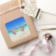The design on these tropical-themed Easter stickers feature a brightly colored "Happy Easter" text adorned with pastel Easter eggs, ribbons, and spring flowers elegantly floating above a serene turquoise ocean. The style is whimsical and soft creating a dreamlike atmosphere! The stickers are available in small (sheet of 20) or large (sheet of 6). Please browse our complete collection of tropical-themed Easter cards, gifts, and home decor. Special design requests accepted.