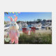 Happy Easter Hilton Head style! The design on this beautiful Easter doormat features an original photograph of the Harbour Town marina at Sea Pines with its luxury yachts, upscale condos, and signature red rocking chairs. A special visit by Easter Bunny dressed in pastel pink holding a decorated Easter basket completes the festive scene. The text reads "Happy Easter from Hilton Head Island." The doormat is the perfect addition to your Easter front porch, lanai, sunroom, mudroom, laundry room, or garage! Please browse our complete collection of Hilton Head and Lowcountry Easter cards, gifts, and home decor. Special design requests accepted. (Photography and Creative Design by Glenda Motsavage)