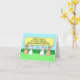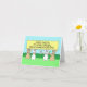 A group of cartoon bunnies sitting in a field holding a lemon coloured banner that says 'Happy Easter to a very special Great Gradndaughter'. Some of the bunnnies are eating carrots.