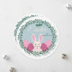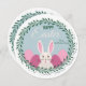 A unique, round, Easter card featuring a white bunny and Easter eggs all framed in a round, foliage window. The message of "Happy Easter" is pre-printed. (<a href='http://www.freepik.com/free-vector/floral-easter-egg-stickers-set_1045402.htm'>Designed by Freepik</a>). <br/><br/>The card is easy to customise with your wording, font, font colour and choice of six paper types.<br/><br/>Not exactly what you're looking for? All our products can be custom designed to meet your needs at no extra charge.<br/><br/>Simply contact us at askcottonlamb@gmail.com<br/><br/>Coordinating products available: