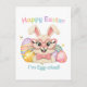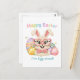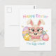 Celebrate Easter with this adorable design featuring a cute bunny in pink heart glasses and a bow tie, surrounded by colourful decorated eggs and tiny butterflies. The playful phrase "Happy Easter I'm Egg-cited!" adds a touch of humour, making it perfect for spreading joy.