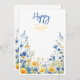 A vibrant composition showcasing a watercolor depiction of blue and yellow wildflowers on a white background. Perfect for spring or summer themes, invitations, decor, or artistic presentations. Perfect for sending warm wishes to family, friends, and loved ones. Spread the joy of Easter with a card that reflects your individual style and warmth. Make this Easter extra special!