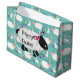 A Large Teal Gift Bag Patterned In White Lambs And Bunnies