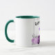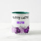 EASTER MUG FOR "MOM" WITH PURPLE FLOWERS AND TWO TONED HANDLE AND INTERIOR.