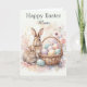 This charming, vintage-inspired watercolor Easter card is ideal for mothers who appreciate delicate artwork. The classic design features a rabbit mother and her baby bunny beside a basket of pastel Easter eggs, all set against a background of soft flowers and blush tones. A "Happy Easter, Mom" greeting is featured on the front, with an inside message and signature line. This fully customizable card is easily modified using the design tool. A digital download is also available, providing a convenient way to save on postage costs.