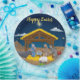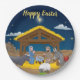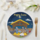 Cute nativity scene for Happy Easter with a night sky and a baby in the manger. Paper Plate.