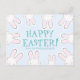 Happy Easter teal pink pale blue and white custom text cute bunnies rabbits modern fun funny Easter Postcard