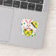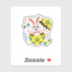 A super fun and festive illustration of a cute bunny with a bow tie popping out of a yellow floral egg, surrounded by colorful candies and confetti. This joyful design is perfect for kids' Easter party favors, laptop stickers, and festive magnets. Celebrate the holiday with a burst of color and sweetness!