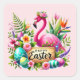 Happy Easter pink flamingo Holiday Square Sticker