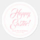 Happy Easter pink hearts border custom script Classic Round Sticker