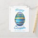 Personalised Happy Easter postcards with blue Easter egg and customisable text where you can add your family name on white background