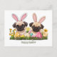 Happy Easter Pug Dogs Bunny Ears Postcard