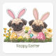 Happy Easter Pug Dogs Bunny Ears Square Sticker