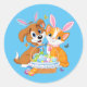 Happy Easter Puppy and Kitten Classic Round Sticker