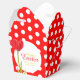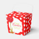 Modern bright Easter tulip paper favour or gift boxes in green red and white. Pretty watercolor tulip art and a polka dot background. Personalised with your own families name or Easter event. Ideal for gifting chocolates sweets or other small gifts. Original watercolor art and design by Sarah Trett. www.sarahtrett.com for www.mylittleeden.com