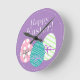 Nice Happy Easter design in a purple circle, with painted eggs.