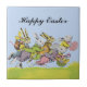 Happy Easter Running Pastel Rabbits Ceramic Tile