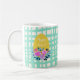 Happy Easter floral egg. Cute floral orange egg with retro plaid pattern background. Retro rustic Easter mug