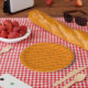 A paper plate with a Happy Easter script pattern in orange and brown. Customise the orange background in an easy way.