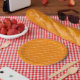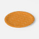 A paper plate with a Happy Easter script pattern in orange and white. Customise the orange background in an easy way.