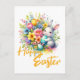 Happy Easter spring flower with cute bunny Holiday Postcard