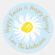 Happy Easter Spring pale blue cute daisy script Classic Round Sticker