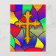 Pretty hand drawn cross with a stained glass background Easter postcard.