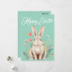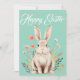Osterkarte "Frohe Ostern" im klassischen Stil mit Hase und Blumen. Wunschkarte für eine schöne Osterzeit für Familie und Freunde.