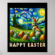 Happy Easter Van Gogh Style Bunny And Eggs Poster