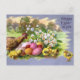 Happy Easter Vintage Chicken and Eggs Colourful Postcard