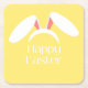 Happy Easter white bunny ears Square Paper Coaster