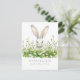 Send Easter wishes in style with this modern Easter holiday postcard, featuring a sweet white bunny rabbit peeking out from behind a beautiful arrangement of delicate spring wildflowers. The fresh white blooms with cheerful yellow centres create a bright and uplifting design, perfect for celebrating the season. The front of the card includes the text "Happy Easter, from The [Your Name] Family" in an elegant script font, which can be personalised to suit your needs. The reverse side is blank for a handwritten message if desired. Ideal for sending heartfelt Easter greetings to family, friends, and loved ones.