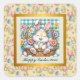 Happy Easter With Cute Bunny, Eggs, and Floral Square Sticker