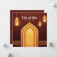 A cute and unique card , featuring a Red Engraving With Gold lanterns to celebrate Eid with your loved ones,