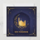 Happy Eid Mubarak Gold Crescent Star Mosque Blue Holiday Card
