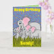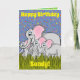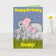 Happy elephants make up this fun birthday card. Customisable so you can add your own text and change the background colour.