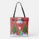 A happy elf with presents for everyone makes up this fun Christmas tote bag. Customisable so you can add your own text and change the background colour. Bring in the holidays with this festive design.