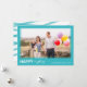 Happy Everything Holiday Photo card featuring your photo in a bluish teal shade frame border, below which are the words "Happy" in bold together with "Everything" in a relax cursive script in white. Card includes a white backside featuring bluish teal overlapping lines. Check out other holiday items here https://www.zazzle.com/collections/holiday_christmas_new_year_cards-119015800351034065?rf=238364477188679314
