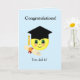Graduation card with graduation hat and happy face on light blue background. Ideal for Graduations. Text can be personalised!