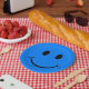 Cute blue face, the inverse of the yellow face design that we have. Show how happy you are with this big happy face with a huge smile. The face can be moved, resized, or deleted. The background colour can be changed to any colour you want. Customise it and have fun!