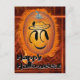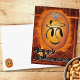 Customisable postcard with a happy face jack-o-lantern on a pumpkin photograph makes a great Halloween postcard. The background is a fiery computer generated fractal design. Fill in the template block to add your own text or click "Customise it" to select a font style, colour and size or change the black background image with a colour. Use postcards for thank you notes, event announcements, new address and more. Even use it for an invitation and save on the postage costs.