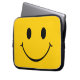 Custom laptop bag featuring a happy face on yellow. Background colour can be changed!