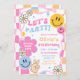 Happy Face Smile Groovy Chequered Birthday Party Invitation