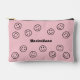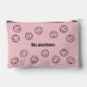 Black outlined happy faces on a lighter pink background SMALL accessory pouch. Both the colour of the happy faces, text and background can be recolored as desired using the 'edit design' tool in the template.