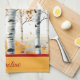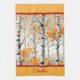 This kitchen towel features beautiful birch trees with warm shades of orange fall foliage leaves -- It will bring a lovely burst of colour to your fall decor.