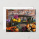 Send this autumn season postcard to your family and friends to wish them a "Happy Fall" This postcard features harvest pumpkins, colourful Chursanthemums and an outdoor bench.